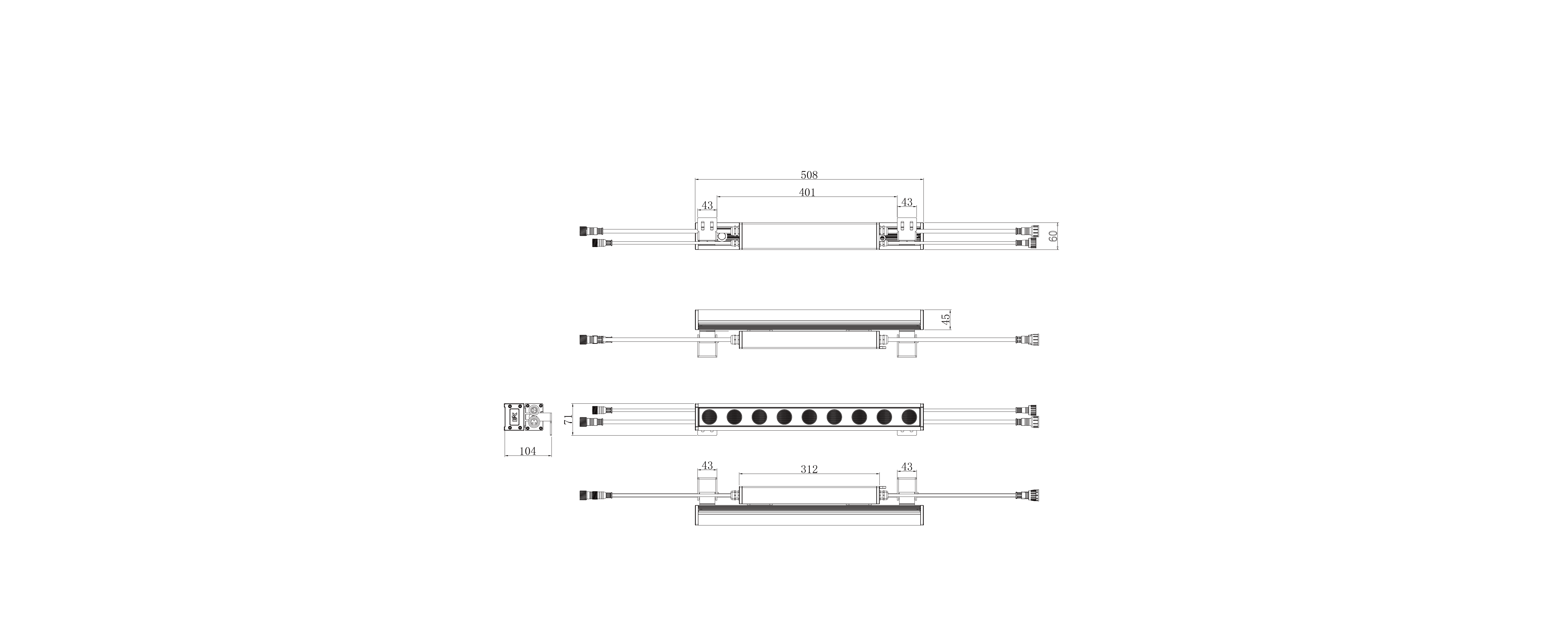 | 信號連接 | 3芯DMX防水信號線輸入/輸出,最大連接數量32台 |