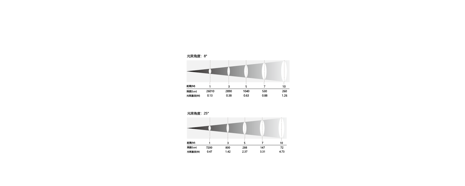 光束角度8°/15°/25°/40°/60°/D15 x 30°