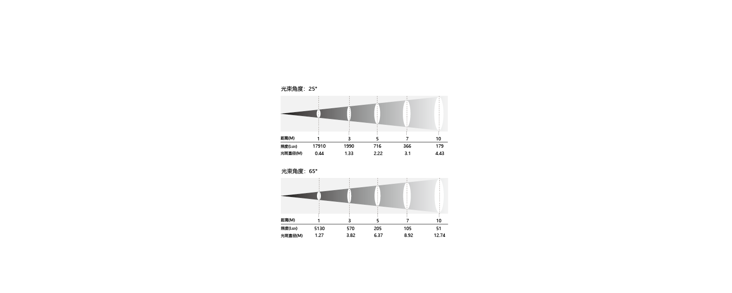 | 亮度 | 5米距離750 Lux(25°) |