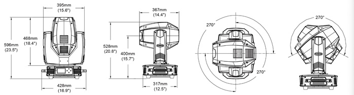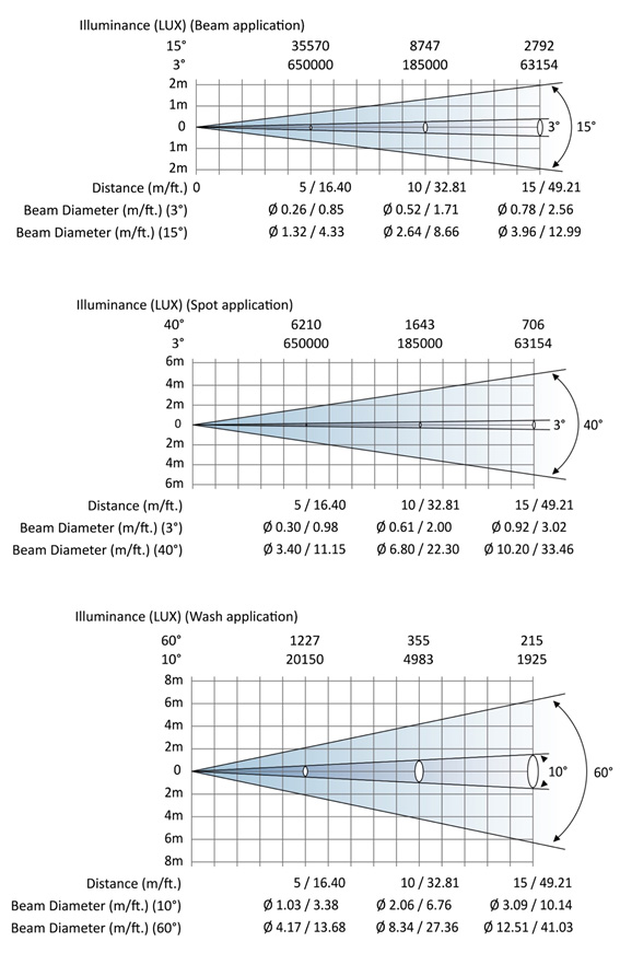 光斑角度 BEAM 3°-15°/ SPOT 3°-40°/ WASH 10°-60°