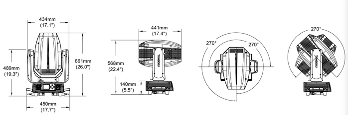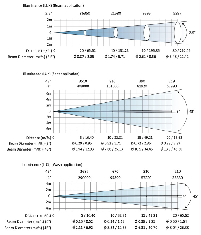 光斑角度 BEAM 0°-2.5°/ SPOT 3°-43/ WASH 4°-45°