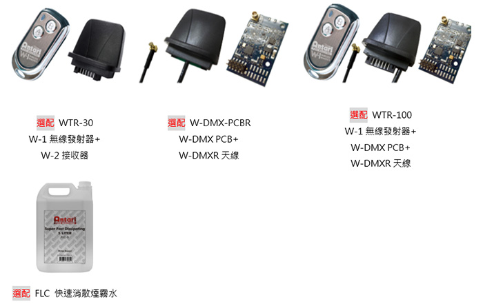 控制: 手動控制/DMX/定時控制/無線控制(選配)/無線DMX(選配)