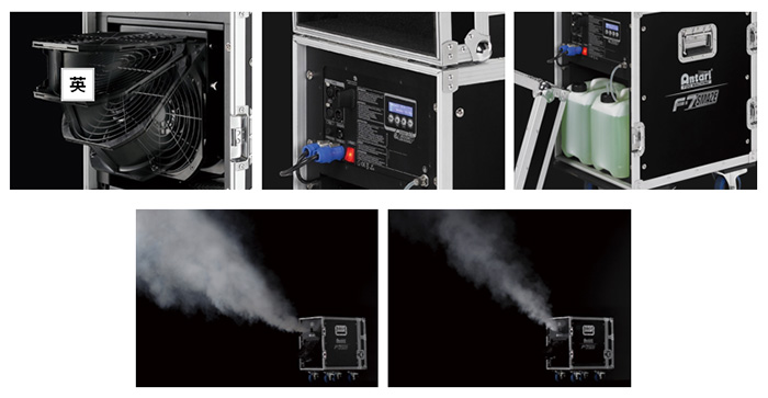 F-7 可透過切換Fog 與Faze 模式來輸出強而有力的煙霧或高品質的薄煙,並可在短時間內佈滿舞台。採用了全新的空氣幫浦技術,添加了自動清管的功能,並能產生細緻、乾燥的煙霧。內建可調式風扇,讓您可輕鬆的調整煙霧方向。